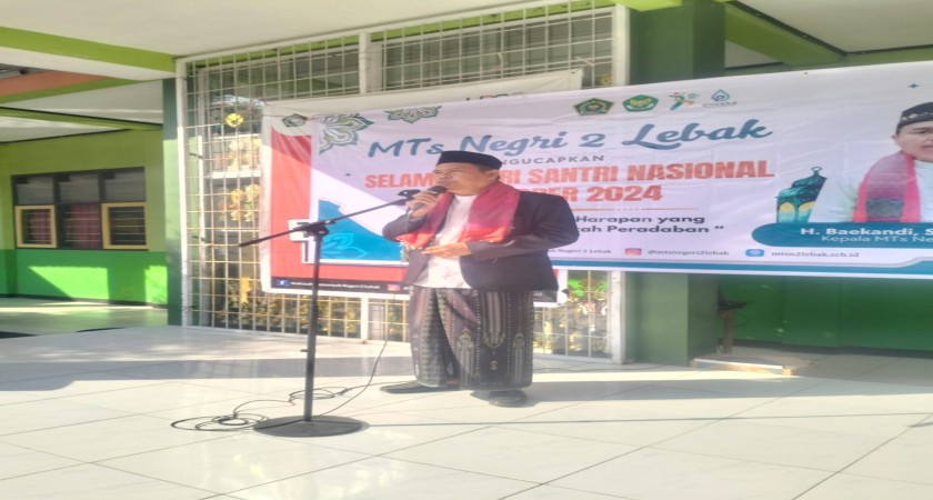 "Santri dan ulama merupakan pejuang kemerdekaan. Kita sebagai penerus perjuangan, harus bisa mempertahankan kemerdekaan dengan kedisiplinan", pesan H. Baekandi, S.Ag., M.Pd., kepala MTs Negeri 2 Lebak.